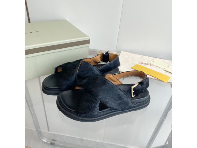 MARNI Fussbett Hairy Mules Yellow Loafers